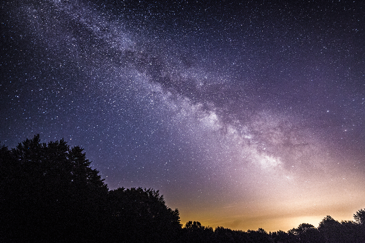 Questa immagine è stata realizzata con due scatti a diaframma diverso. Diaframma 2,8 e tempo 30 secondi per la via lattea, e diaframma chiuso a 11 per la capanna dei pastori.